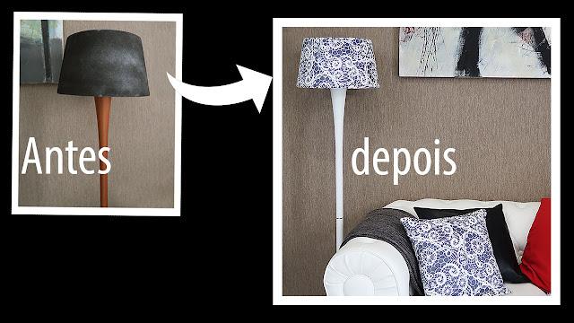 Um abajur que estava prestes a ir para o lixo, foi resgatado, reciclado e renovado. A sala , além de ganhar um abajur novo, ganhou um outro visual.